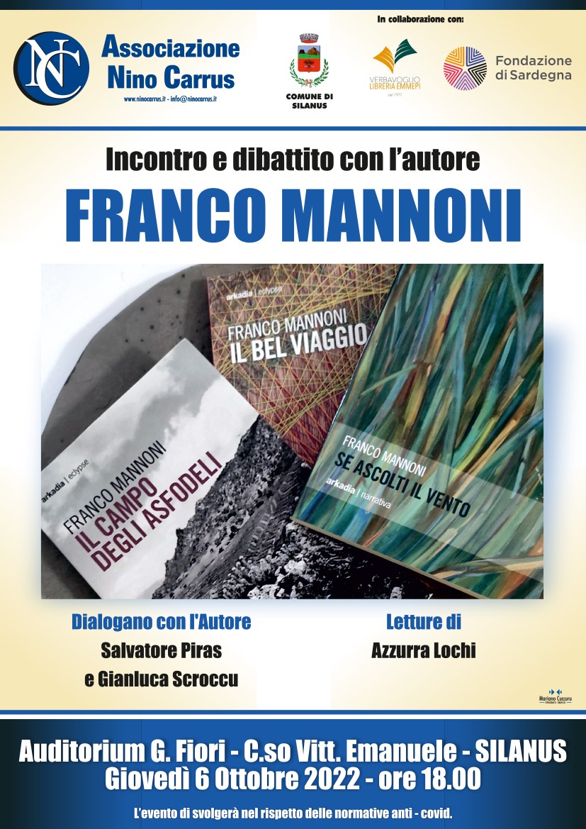 Giovedì 6 ottobre alle ore 18:00 a Silanus, presso l’Auditorium comunale Giuseppe Fiori, si terrà un interessante incontro con Franco Mannoni, autore premiato con il terzo posto in occasione del prestigioso Premio Letterario Internazionale Antonio Semeria per il suo ultimo libro “Il bel viaggio” e vincitore del premio speciale della giuria Premio Grazia Deledda 2022 per il romanzo “Il campo degli asfodeli”.