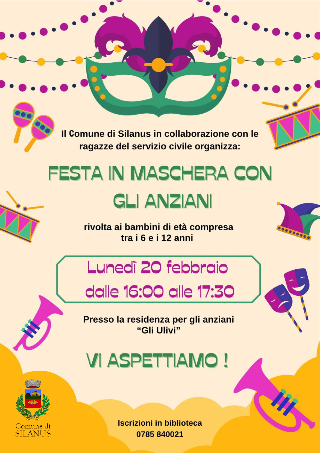 Il Comune di Silanus in collaborazione con il Servizio Civile organizza una festa in maschera presso la residenza per anziani di Silanus “Gli ulivi”.