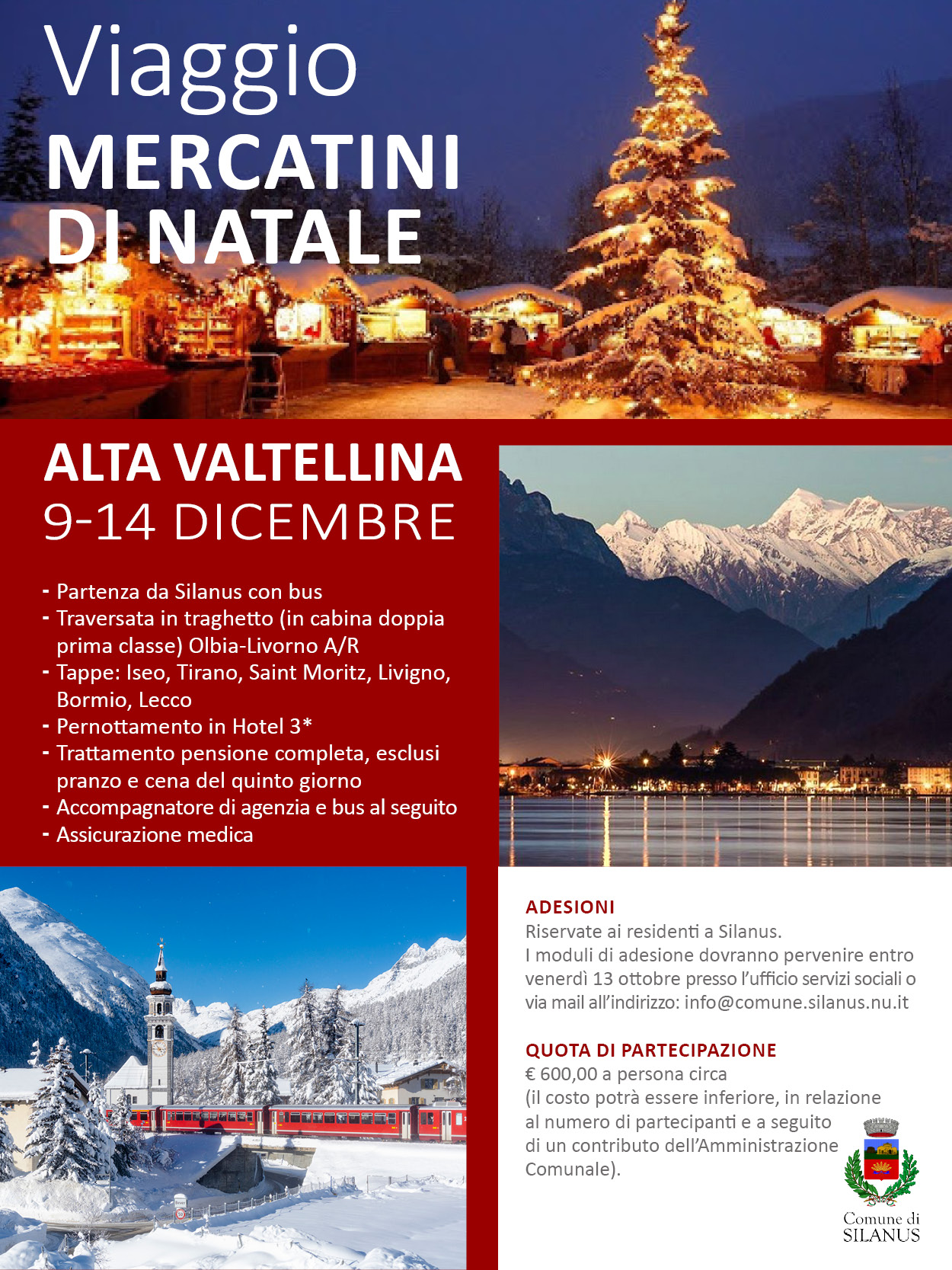 L’Amministrazione Comunale, al fine di creare momenti di socializzazione e scambio culturale, organizza un viaggio nell’Alta Valtellina aperto a tutta la popolazione.