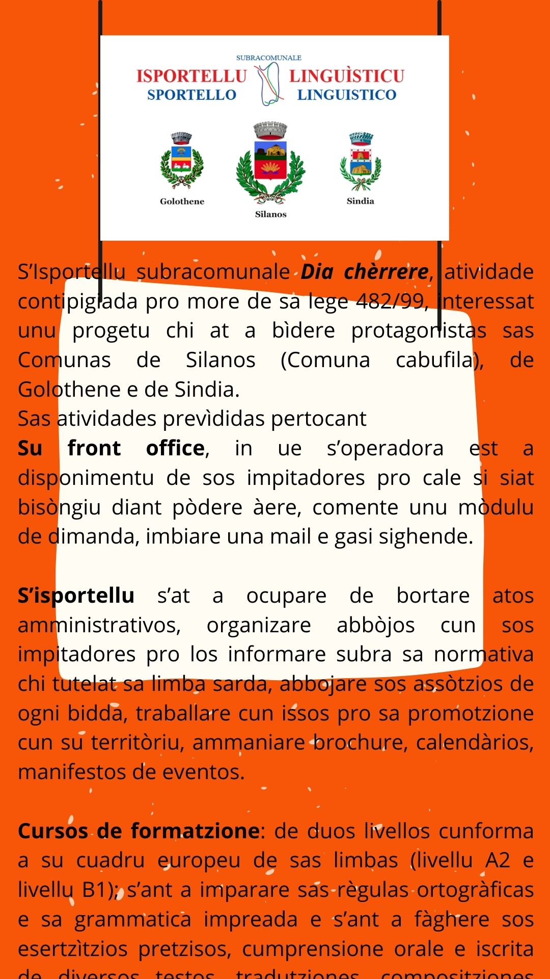 Il progetto prevede il coinvolgimento dell’intera comunità (famiglie, biblioteche, ludoteche, scuole e associazioni), per favorire e sviluppare una coscienza bilingue diffusa assumendo il sardo come lingua naturale primaria su cui fondare i processi di formazione e di apprendimento linguistico-culturale e di appartenenza comunitaria partendo dagli utilizzi linguistici familiari e di uso quotidiano.